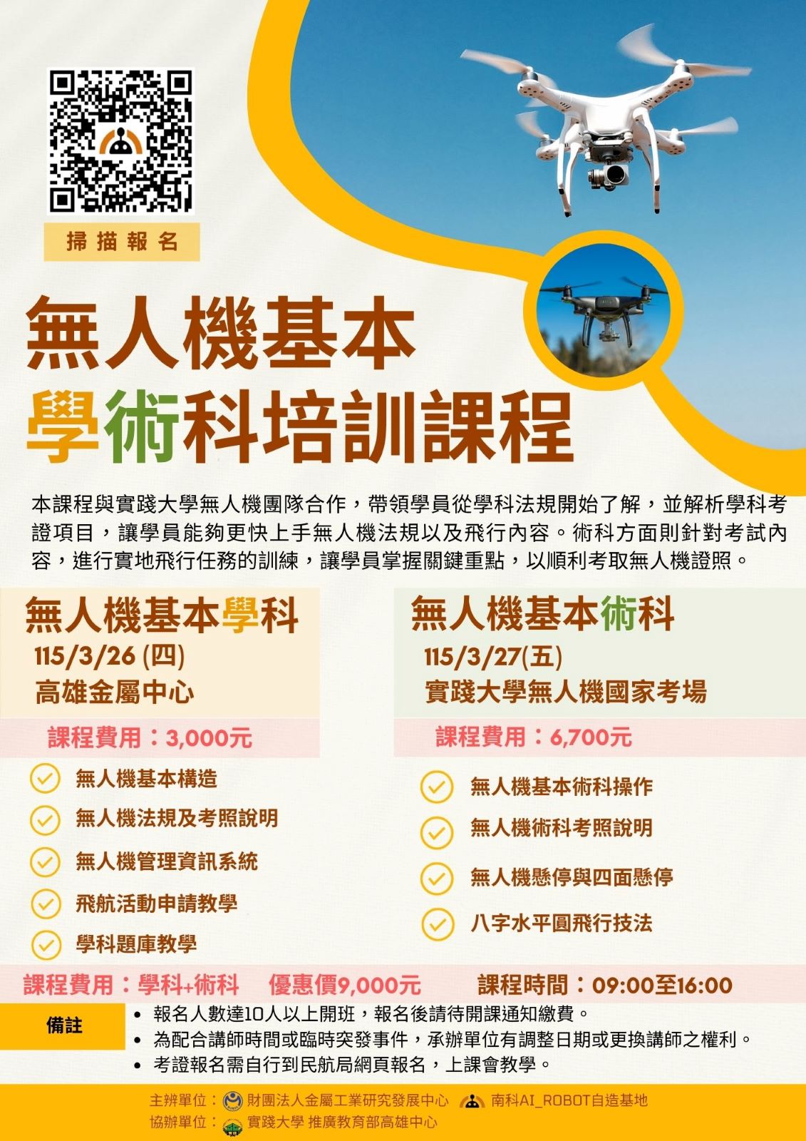 4.本課程費用不含無人機考證,需自行到民航局網頁報名。