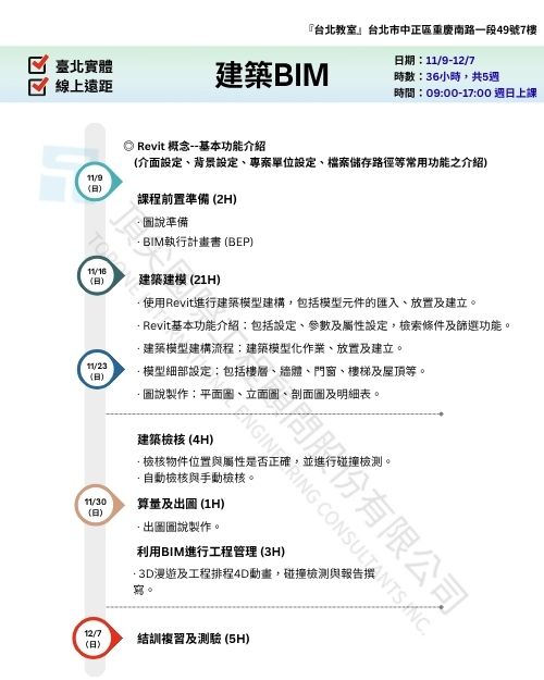 提升並培訓國內之BIM專業人才,亦協助相關領域在職者培訓REVIT+NAVISWORK軟體之操作能力。