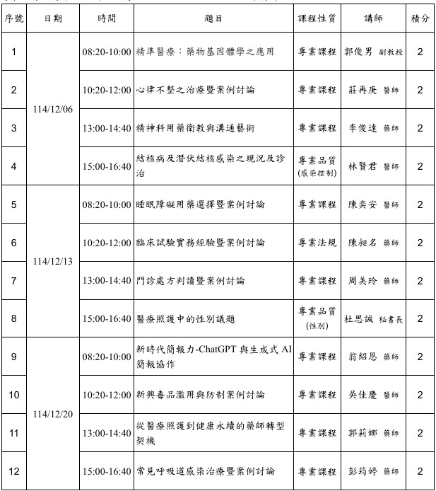 提供於全民健康特約醫事服務機構服務的藥師及藥劑生之繼續教育。