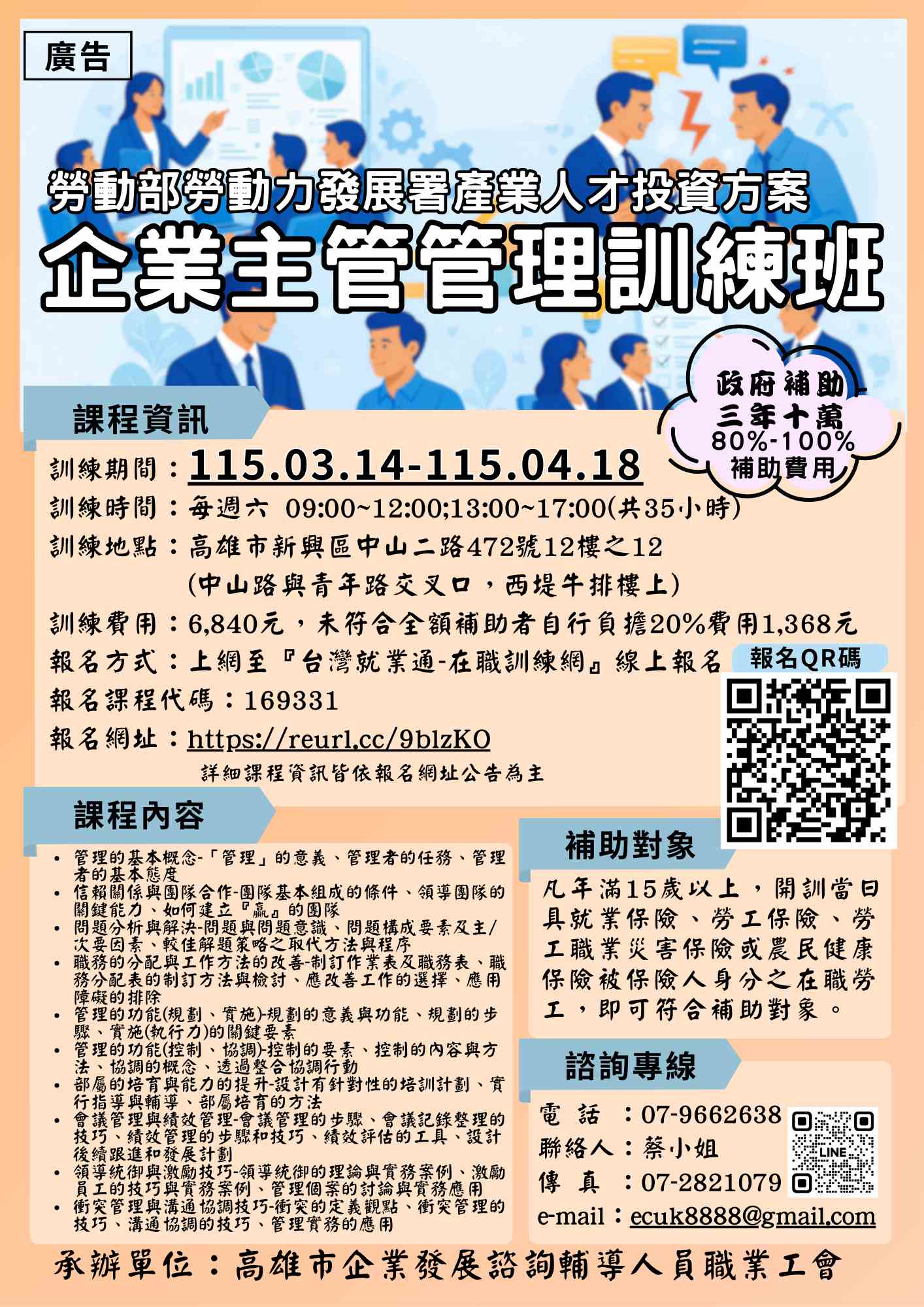 7.部屬的培育與能力的提升-設計有針對性的培訓計劃、實行指導與輔導、部屬培育的方法(3小時)