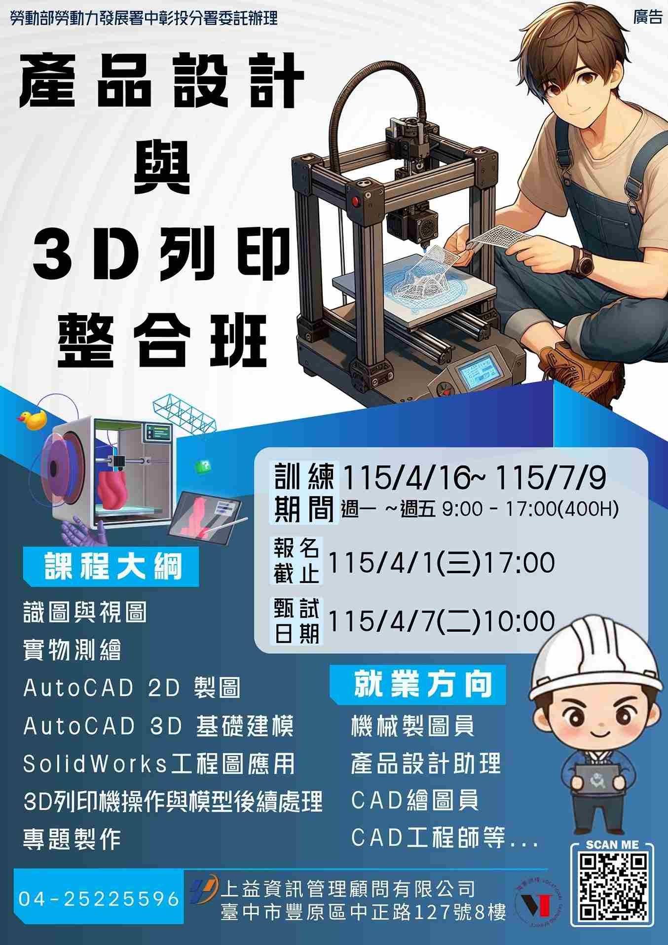 『產品設計與3D列印整合班』政府補助100%
