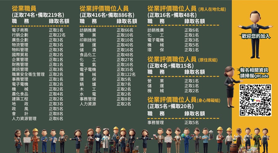(一)從業職員,正取74、備取219名。