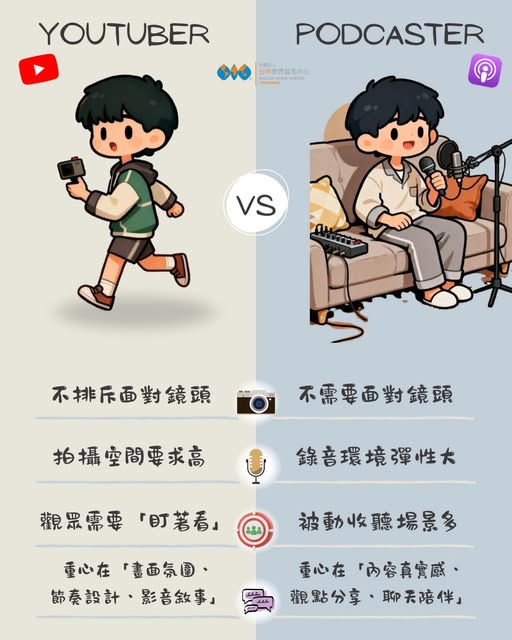由於Podcast 入門的技術門檻較影片製作低,時間和金錢的花費成本也較少、聽眾黏著度高,是一個可以建立企業或個人品牌及傳遞價值的社群媒體。