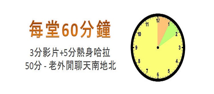 5分熱身 + 5分影片 + 50分真人對話