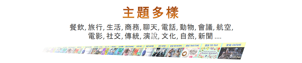 º 彈性主題:Lifestyle、Food、Biz Communications、Sightseeing、News、Movie, 每月自由切換。