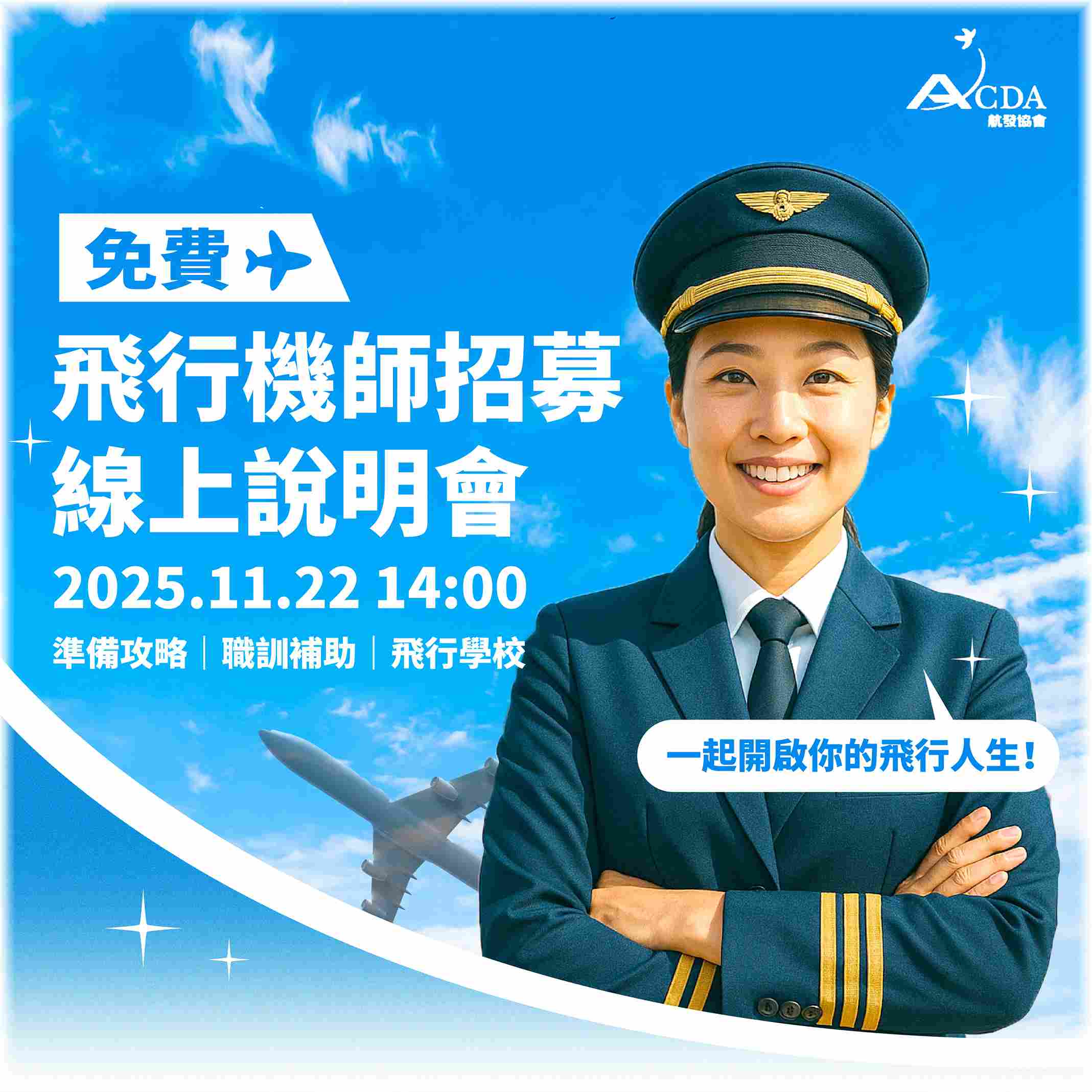 【免費】11/22(六)14:00 飛行機師招募「線上說明會」