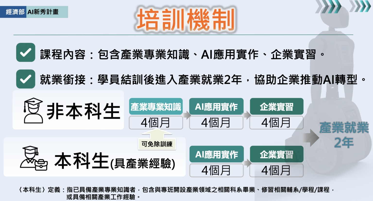 3.於培訓階段為待業者,不得為全職在職勞工或自營作業者,或是公司或行(商)號負責人。